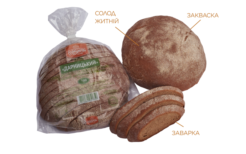 Один із найпопулярніших і найулюбленіших в Україні житньо-пшеничних хлібів. Ми виготовляємо його на заквасці та житній заварці, які допомагають розкрити особливий смак поєднання трьох видів борошна. Довершує рецептуру житній солод, завдяки якому цей хліб має знайомий з дитинства легкий кисло-солодкий смак.