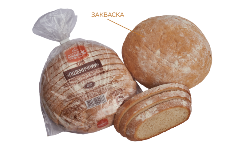 Справжня українська пшенична паляниця. Хлібчик у якому немає ані краплинки зайвого, лише пшенична хлібна закваска і традиційні інгредієнти: пшеничне борошно, вода, дріжджі й дрібка солі. Використання живої закваски, дозволяє розкрити усі смакові та корисні властивості пшеничного хліба. Закваска природньо підсилює запах свіжоспечених буханців і допомагає зробити скоринку хрусткою та золотавою.