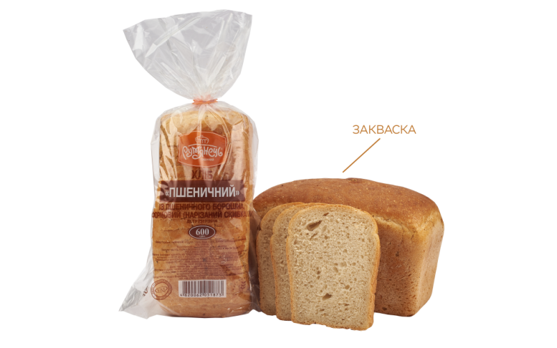 Пшенична класика в улюбленій формі цеглинки. Справжній український пшеничний хліб за традиційною рецептурою із найякіснішого борошна першого сорту. Хлібчик в якому немає ані краплинки зайвого, лише пшенична хлібна закваска і традиційні інгредієнти. Завдяки випіканню у формах, цей варіант «Пшеничного» має тоненьку золоту скоринку та ніжний пористий м’якуш.