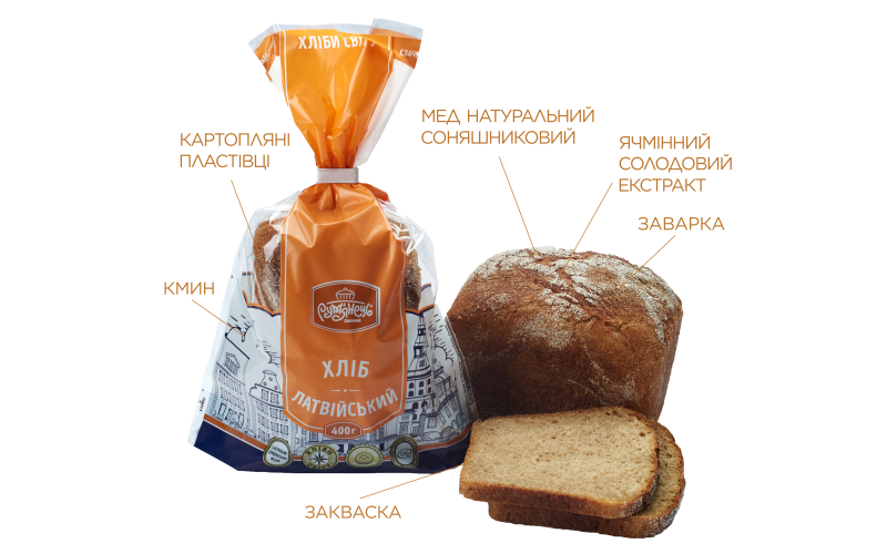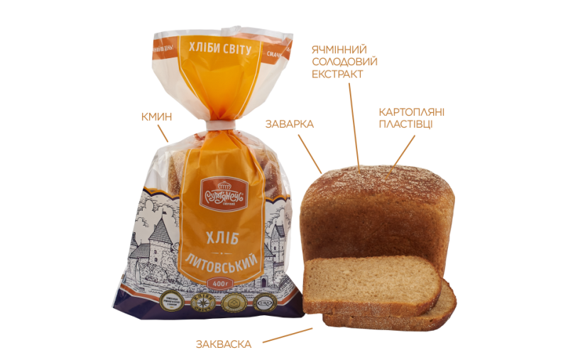 Флагман нашої особливої колекції «Хліби світу». Справжній заварний житньо-пшеничний хліб, виготовлений на живій житній заквасці. У цей хліб ми додаємо картопляні пластівці та ячмінний солодовий екстракт, які допомагають відтворити автентичний солодкуватий присмак житнього литовського хліба. Довершує смакову композицію кмин, який литовці обожнюють додавати до улюблених страв.