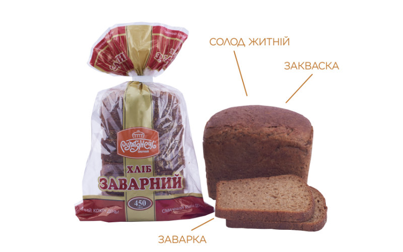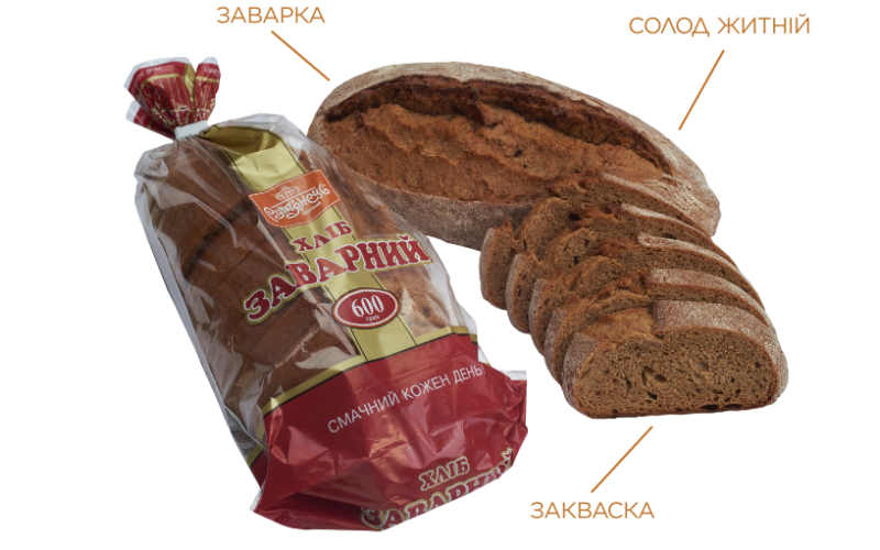 Заварний житньо-пшеничний хліб, виготовлений на живій житній заквасці. Завдяки заварному способу приготування, повністю розкриваються корисні властивості якісного житнього та пшеничного борошна, підсилюється насичений хлібний аромат. Поєднання двох видів борошна робить житній смак цього хліба більш ніжним з ледь відчутними солодкими нотками. Заварний хліб є джерелом клітковини, складних вуглеводів та має низьку калорійність.