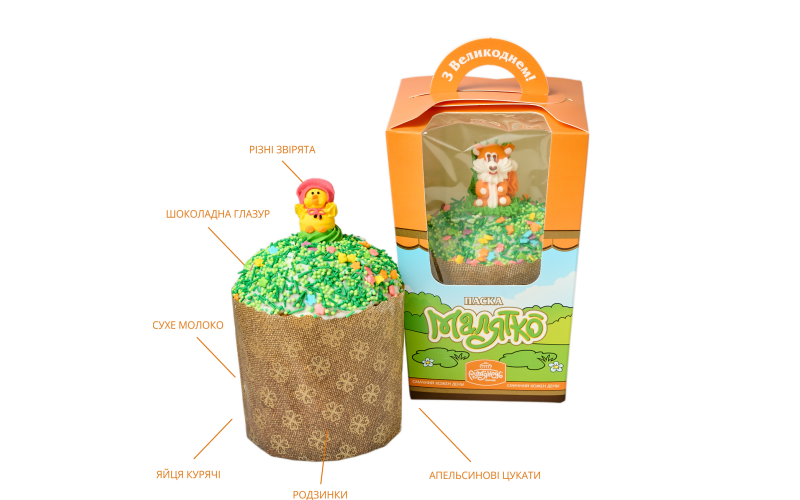 Особлива паска для найменших. Вона має ніжний пухкенький м’якуш з вершковим смаком, а завдяки апельсиновим цукатам, кожна скибочка цієї паски ще смачніша. Відмінно смакує тепленьким молоком і какао. Оздоба з милими лісовими звірятками неодмінно сподобається малечі.