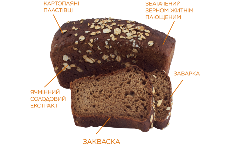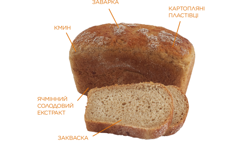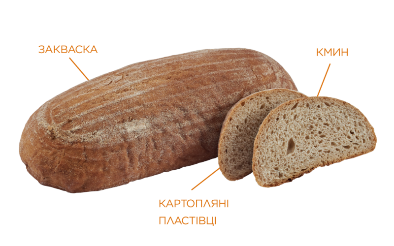 На українському столі хліб і страви з картоплі завжди займали особливе місце, саме тому ми створили хліб який об’єднує наші гастрономічні традиції. Особливий житньо-пшеничний хліб, виготовлений на заквасці з додаванням картопляних пластівців та картопляного пюре. Він має приємний житній смак, доповнений пряними нотками кмину.