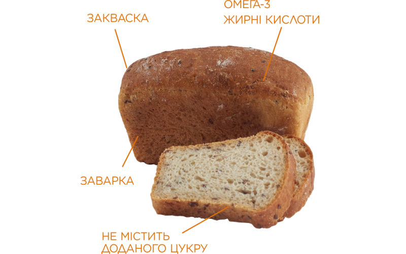 Справжній заварний пшеничний хліб зробити ще кориснішим і смачнішим, якщо додати зернятка льону. Саме так з’явився наш хліб «З льоном» – улюбленець прихильників здорового харчування. Завдяки заварці цей хліб повністю розкриває природні корисні властивості якісного пшеничного борошна першого сорту. Він має надзвичайний духмяний аромат та солодкуватий присмак, хоч і взагалі не містить доданого цукру. Насіння льону, яке ми щедро додаємо до цього хліба, збагачує його омега-з жирними кислотами та створює яскраві смакові акценти.