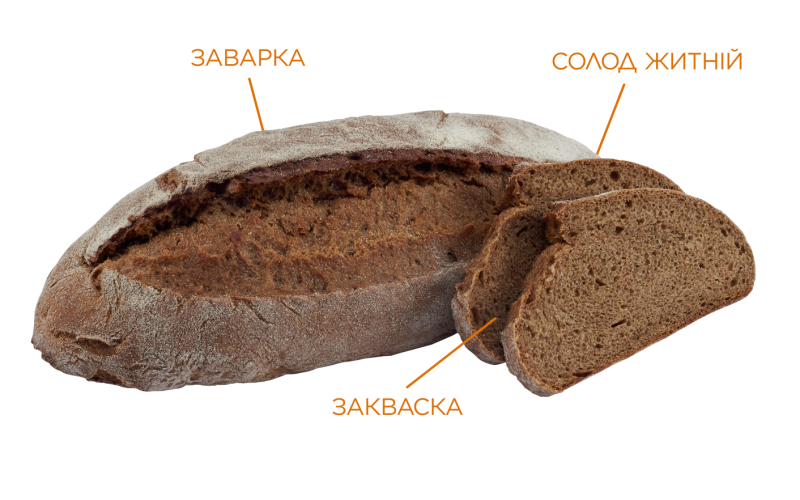 Справжній український заварний житньо-пшеничний хліб. Виготовлений на живій житній заквасці. Завдяки заварному способу приготування цього хліба, повністю розкриваються корисні властивості якісного житнього та пшеничного борошна, підсилюється насичений хлібний аромат. Поєднання двох видів борошна робить житній смак цього хліба більш ніжним з ледь відчутними солодкими нотками. Крафтовий вигляд нашого подового «Заварного» з широким апетитним надрізом підкреслює його український характер.