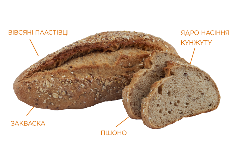 Суміш пшеничного та житнього обдирного борошна на житній заквасці – ідеальна основа корисного хліба. Але наші технологи зробили цей хліб ще кориснішим, додавши вівсяні пластівці, насіння льону, зернятка соняшника, пшоно та білий кунжут. Більше злаків – більше користі!