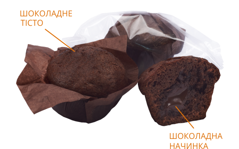 Шоколадний мафін з шоколадною начинкою — це справжня розкіш для смакових почуттів. Його бісквіт має ніжну текстуру і багатий шоколадний смак, щедра порція шоколадної начинки усередині робить кожен кусочок особливо смачним і насиченим. Цей мафін прекрасно підходить як для першої ранкової кави, так і для десертного перекусу в будь-який час дня.