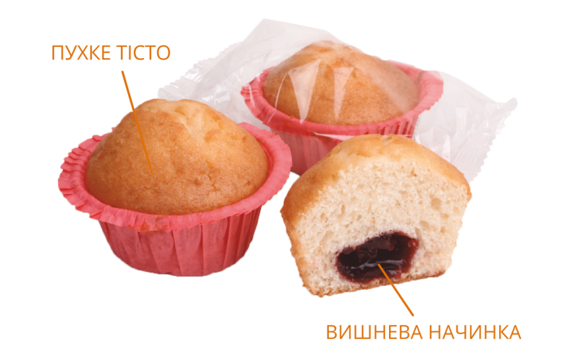 М’якесенький повітряний класичний бісквіт і соковита вишня – ідеальне поєднання смаків. Вишнева начинка урівноважує ніжний смак кексу й, завдяки легкій кислинці, додає яскравих ноток класичному смаку. Ідеальний варіант перекусу, коли хочеться чогось солоденького і особливого.
