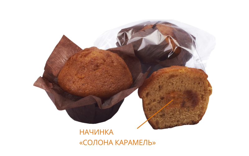 Мафін з начинкою солоної карамелі поєднує в собі солодкість та ніжність тіста з несподіваною солоною ноткою начинки. Цей десерт чарує гармонією смаків: від шовковистого мафіна до неповторного відтінку карамелі, який підкреслюється натяком на сіль.