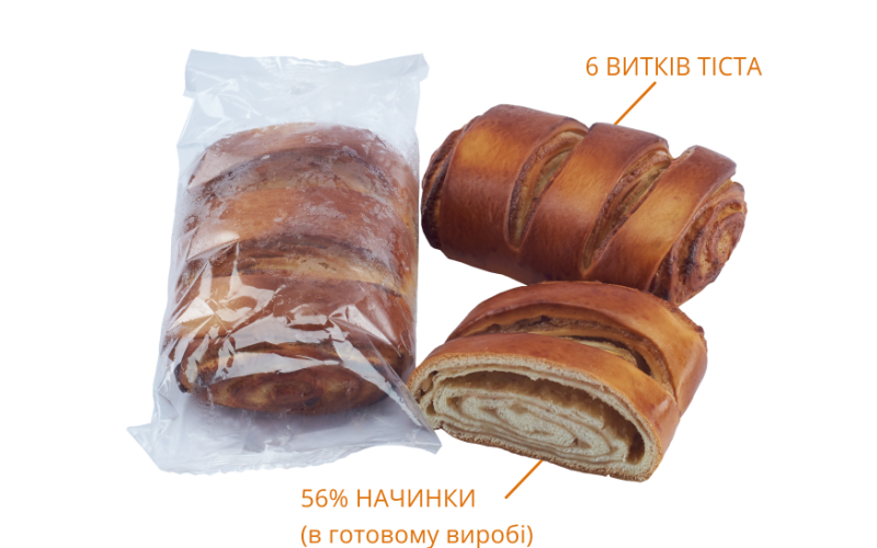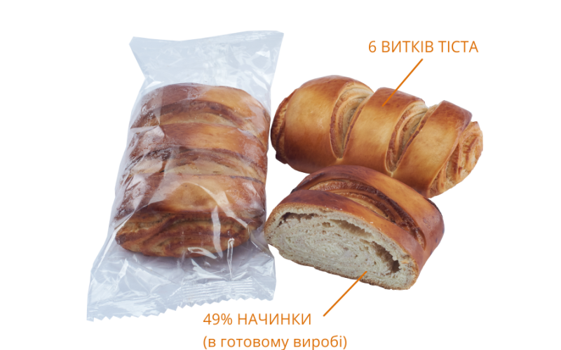 Справжній український завиванець у своїй найніжнішій версії. Традиційне дуже смачне пухке тісто в поєднанні з оксамитовою сирковою начинкою. Вдосконалене нашими майстрами обладнання, дозволяє зробити шість завиточків у завиванці, то ж шари начинки і тіста чергуються в ідеальному співвідношенні. Довершує ніжну смакову композицію легкий ванільно-вершковий аромат.