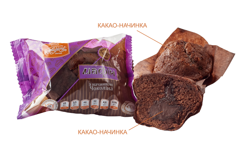 Шоколадний мафін з шоколадною начинкою — це справжня розкіш для смакових почуттів. Його бісквіт має ніжну текстуру і багатий шоколадний смак, щедра порція шоколадної начинки усередині робить кожен кусочок особливо смачним і насиченим. Цей мафін прекрасно підходить як для першої ранкової кави, так і для десертного перекусу в будь-який час дня.