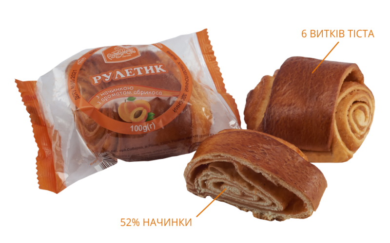 Рулетик з ніжного пухкого тіста з улюбленим фруктовим повидлом – класика смачної здоби. Родзинка смаколика – аромат абрикосу та свіженької випічки з легкими нотками ванілі, до якого просто не можна лишитись байдужим.