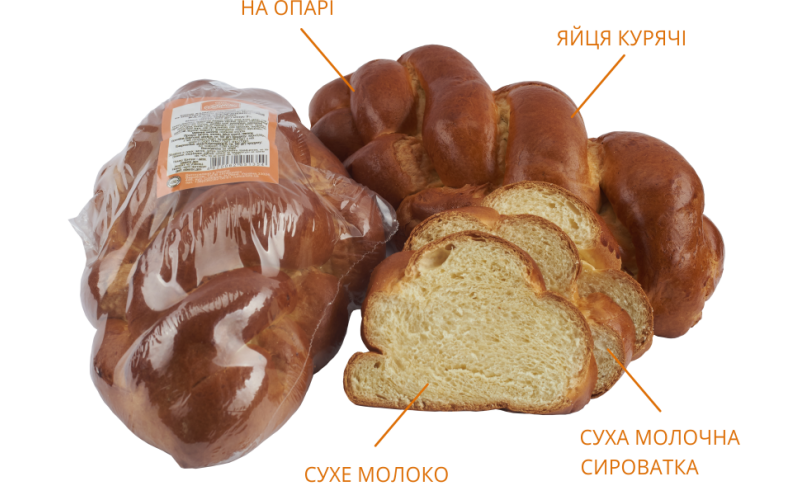 Справжній багатий український калач. Ми виготовляємо його на опарі, ретельно дотримуючись традиційної рецептури, адже знаємо, що ви часто обираєте наш калач «Рум’яний» для особливих подій або особливих гостей. Запорука відмінного смаку – класична рецептура, в основі якої найякісніше борошно вищого сорту, свіженькі яйця та маргарин. Для ніжного вершкового смаку ми додаємо сухе молоко і суху молочну сироватку.