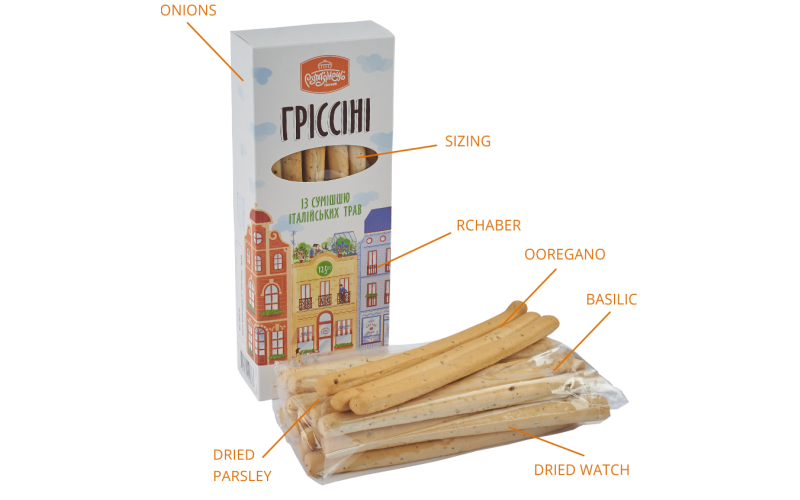Perfectly dried Grissini sticks is a classic feature of Italian cuisine. We added a mix of Italian herbs to the traditional delicate slightly salted dough – it’s very simple but incredibly tasty. In this combination, Grissini has a distinct taste and spicy aroma of Italian herbs.