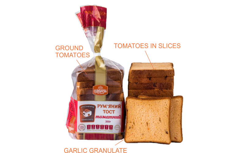 This bread will appeal to those who are delighted with the pronounced, bright taste of tomatoes, with a spicy hint of garlic. Thanks to the pieces of dried tomatoes, you can feel the juiciness and light piquancy.