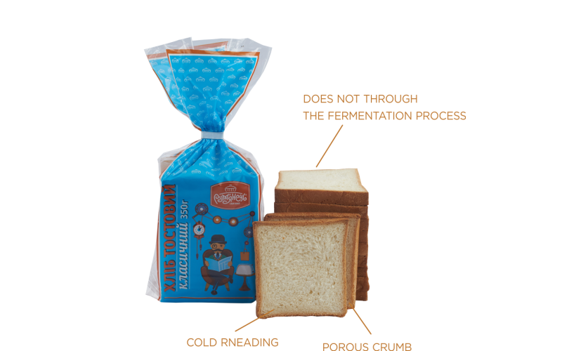 Unique technology based on cold rise dough and a special way of shaping the loaves were developed by our technologists in order to produce a perfect toast bread. That is why our toast breads have a fine-pored, elastic crumb and the thinnest soft crust. All slices have the right thickness and roast evenly in the toaster or on the pan. Each toast comes out incredibly crispy. We add dry milk to our Classic Toast Bread in order to give it a tender creamy taste.