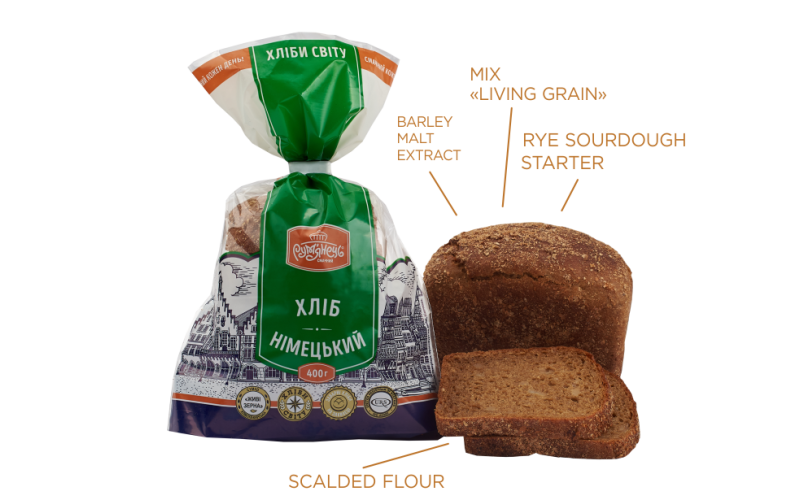 Bread made according to the authentic German formula has to be definitely included into our special ‘Bread of the World’ collection. The Germans love eating bread as well, so they can boast of variety of recipes, we chose to bake a special one. Our German Bread is a rye-wheat loaf, made with scalded flour and active rye sourdough starter. The German temper of this bread is exactly in addition of grains (pearl semolina, sunflower seed kernels, rye whole-grain flour, rye bran). Malt-barley extract not only enhances the beneficial properties of this bread, but also brings sweetish notes to its final taste.