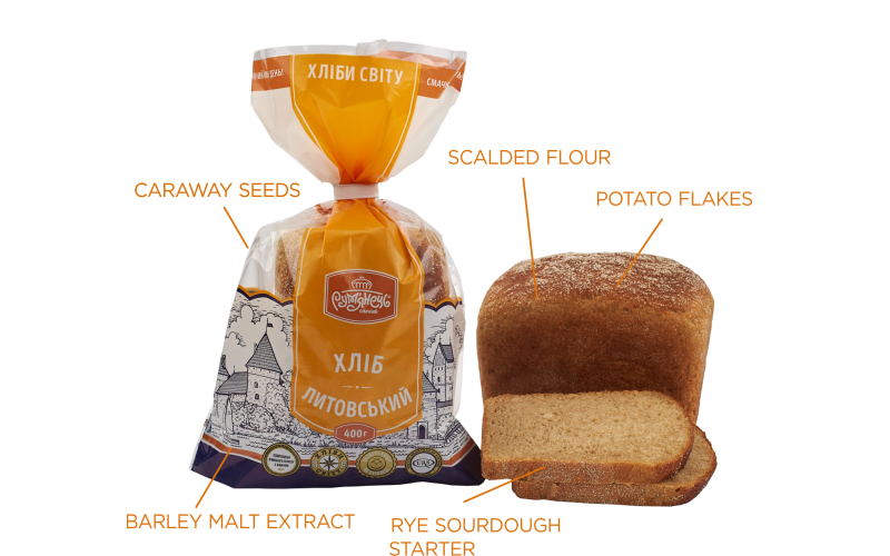 The leader of our special ‘Bread of the World’ collection. This is a true rye-wheat scalded Bread, made with active rye sourdough starter. Potato flakes and barley malt extract are added to this bread which helps recreate the authentic sweetish flavour of Lithuanian rye bread. Cumin fully completes the flavor composition, the Lithuanians love adding it to their national dishes.