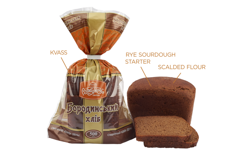 Due to the combination of sourdough, scalded flour and real kvass of our own production, Borodyansky Bread has a dense, porous and slightly moist crumb and a reach, sweet rye taste. Spicy notes of coriander seeds not only highlight the taste, but also nicely enhance the special flavor of bread.