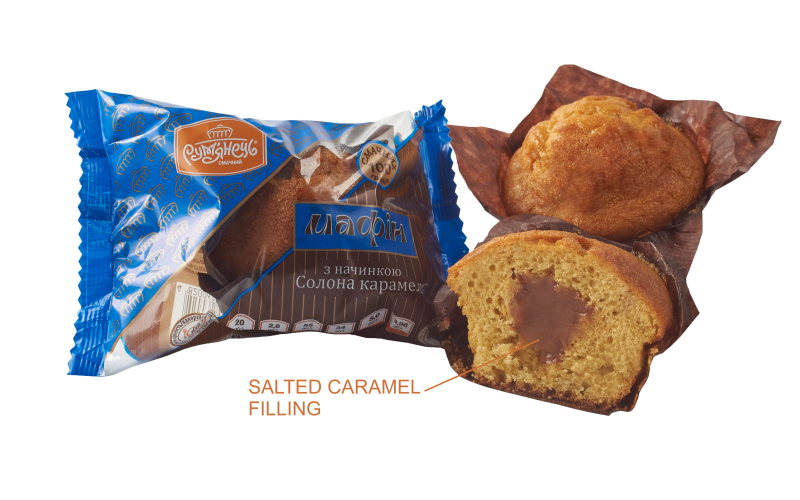 Muffin with salted caramel filling combines the sweetness and tenderness of the dough with an unexpected salty note of the filling. This dessert enchants with the harmony of flavors: from a silky muffin to a unique shade of caramel, which is emphasized by a hint of salt.