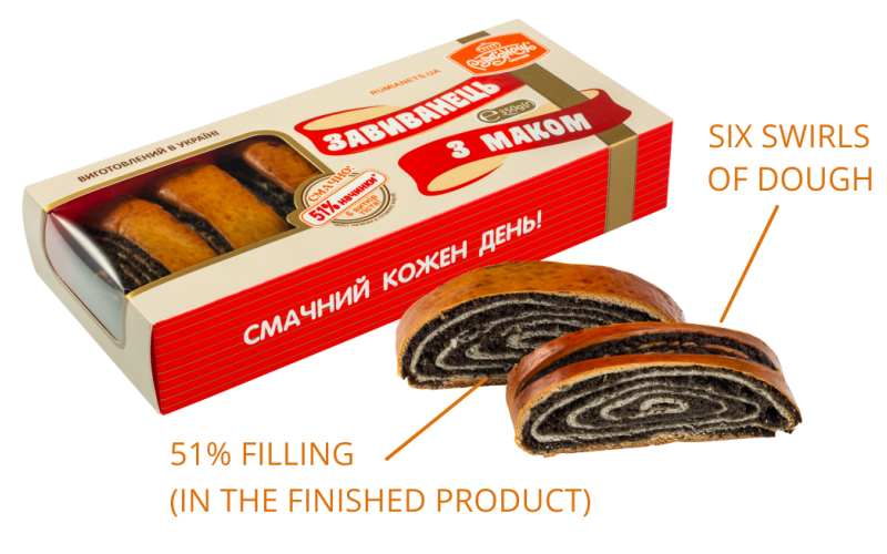 Zavyvanets (Roll) with poppy seeds is a classic Ukrainian treat. There are six very thin swirls of delicate dough and lots of poppy seed filling. The dough is kneaded according to the traditional recipe, as it was once baked in every Ukrainian household. We have modernized our baking equipment so that it is possible to keep the correct proportion in the roll – Ukrainian Zavyvanets suggests more poppy seed filling and less dough. Thanks to stylish and comfy packaging, Poppy Seed Zavyvanets will be a savoury and creative gift to any holiday