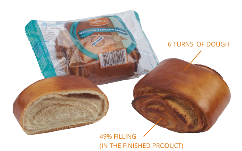 Our classic Cottage Cheese Zavyvanets in a smaller size to be a snack on the go. The ideal weight is 100g in a comfy individual packaging. Traditional delicious, soft, fluffy dough combined with velvety cottage cheese mixture. It is a roll with six swirls, so the layers of filling and dough take turns in a perfect order. Cottage Cheese Roll is a true Ukrainian cottage cheese dessert.