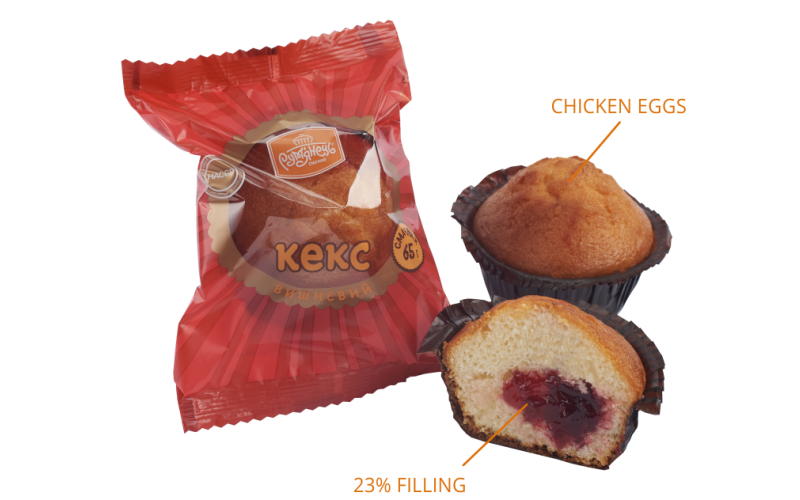 A soft, airy sponge dough and a juicy cherry filling is a perfect combination of flavours. The cherry filling balances the delicate taste of the muffin and due to its slight sourness adds bright notes to the classic muffin taste. An ideal option for a snack when you feel like having something sweet and special.