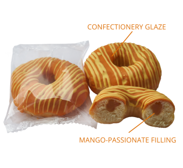 Ingredients: highest-grade wheat flour, mix for doughnuts (15%), "Сhocolina Burgundy with berry yogurt flavor" (24%), yeast, sugar, margarine, eggs, water, sugar powder.