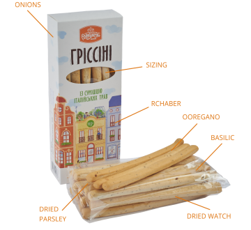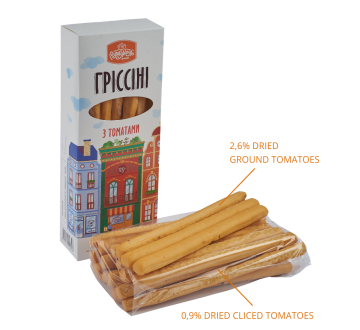 Perfectly dried thin Grissini sticks with sesame seeds. While baking, sesame reveals its taste in a special way. Thanks to sesame seeds these Grissini sticks have a subtle nutty flavor. Breadsticks with sesame seeds make a perfect match to the first courses and salads, or as a tasty snack alone.