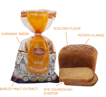 Ingredients: first-grade wheat flour, drinking water, peeled rye flour, Goldling grain (wheat sprouted fermented grain), sugar-glucose syrup “Leipomo”, potato flakes, bread mix “Brownextra”, white sugar, compressed baker’s yeast, table salt,barley malt extract (dark), dry baked wheat gluten.