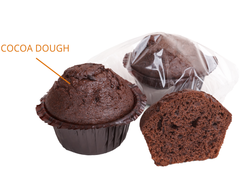 Chocolate muffins are one of the most popular desserts to accompany morning coffee or even to match your evening cup of tea, because it is hardly possible to resist such a sweet treat. It is a tender, airy sponge cake with a bright chocolate taste. We add a bit of dry milk into our muffins that balances the cholate flavor and brings them a special delicate cocoa aroma.