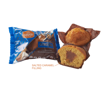 Chocolate muffins are one of the most popular desserts to accompany morning coffee or even to match your evening cup of tea, because it is hardly possible to resist such a sweet treat. It is a tender, airy sponge cake with a bright chocolate taste. We add a bit of dry milk into our muffins that balances the cholate flavor and brings them a special delicate cocoa aroma.