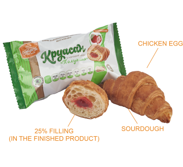 Ingredients: highest-grade wheat flour, drinking water, puff pastry margarine, filling “Caramel”(25%), baking improver, white sugar, chicken eggs, compressed baker’s yeast, milk margarine 82%, improver for freezing, table salt.