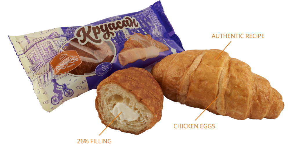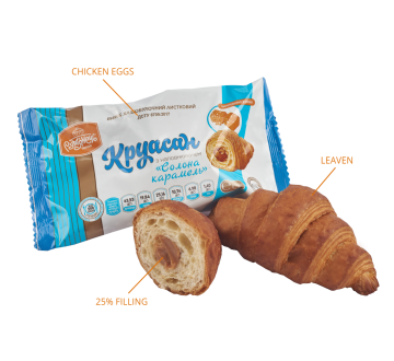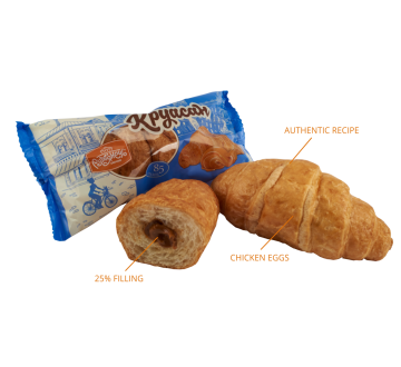 Ingredients: highest-grade wheat flour, drinking water, puff pastry margarine, filling “Baked milk”(26%), baking improver, white sugar, chicken eggs, compressed baker’s yeast, milk margarine 82%, improver for freezing, table salt.