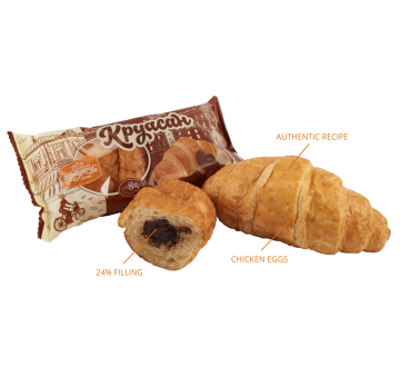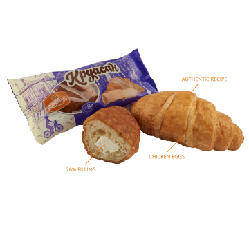 Ingredients: highest-grade wheat flour, water, filling “Salted caramel” (23%), puff pastry margarine, sugar, milk margarine, compressed baker’s yeast, molasses (glucose syrup), table salt, baking improver, liquid wheat sourdough, vanillin.