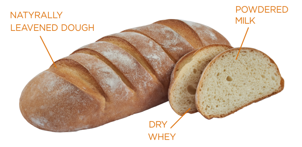 Ingredients: highest-grade wheat flour, sugar, powdered milk, dry whey, margarine, yeast, salt, water.