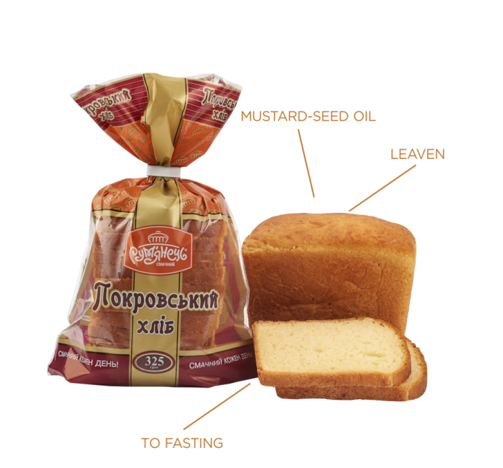 This is a true classic of Ukrainian wheat bread-baking. It is made from the perfect premium quality wheat flour with live wheat sourdough starter. It is exactly sourdough starter that brings out that assertive wheat flavor, gentle yet complex sourness, and makes the bread crumb structure incredibly fluffy and porous. Adding of mustard oil gives the bread nice soft yellow colour. Our Pokrovsky Bread is baked in special baking pans, it allows us to make its crust evenly golden, thin and elastic.