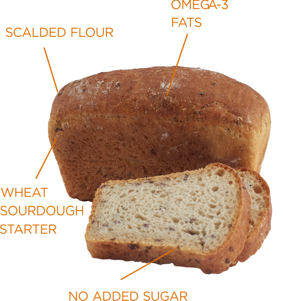 It is a true scalded bread made with wheat sourdough starter. In order to make it more useful and delicious we added flax seeds in it. The ‘Flax Seed Bred’ has become a popular loaf with people who prefer to keep a balanced diet. Owning to the process of scalding the flour this kind of bread fully reveals natural benefits of premium quality wheat flour. It brings rich soul-satisfying aromas and sweet aftertaste, although it does not contain any added sugar. Thanks to the flax seeds which are added to this bread in big amount, the loaf is enriched with Omega-3 fat acids and creates bright taste accents.