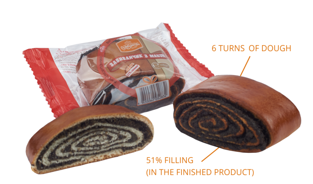 This is your beloved Poppy Seed Zavyvanets in a smaller size to be a snack on the go. Traditional delicious soft fluffy dough with lots of poppy seed filling. This Poppy Seed Roll tastes great with favourite tea, coffee, yogurt or fresh juice. The ideal weight is 100g in a comfy individual packaging. Mini Zavivanets of this kind is a perfect option for a tasty snack any day.