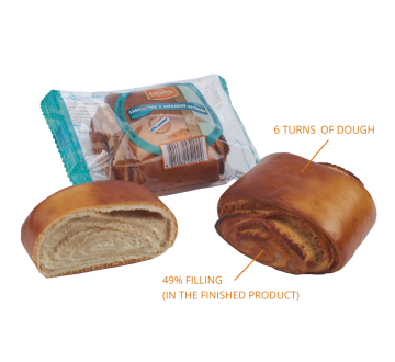 Filling: apples – 64,1% (fresh-frozen apples 80%, sugar, water, stabilizer modified corn starch, acidity regulator citric acid, preservative potassium sorbate), apple jam – 25,6% (apple puree, sugar, glucose-fructose syrup, acidity regulator citric acid, preservative E200), semolina,moisture-retaining agent, white sugar).