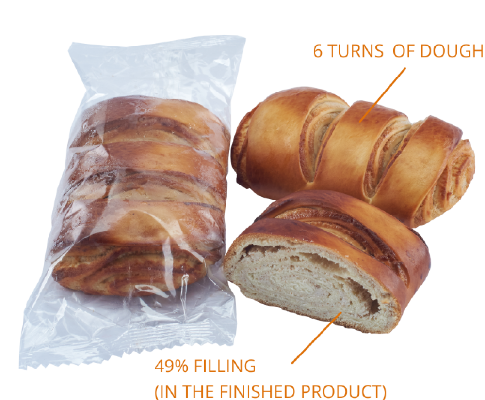 This is an authentic Zavyvanets (Roll) in its most tender version. Traditional delicious and fluffy dough combined with velvety cottage cheese mixture. The equipment modernized by our specialists allows to make a roll with six swirls, so the layers of filling and dough take turns in a perfect order. A tender vanilla-creamy flavor compliments the delicate taste composition.