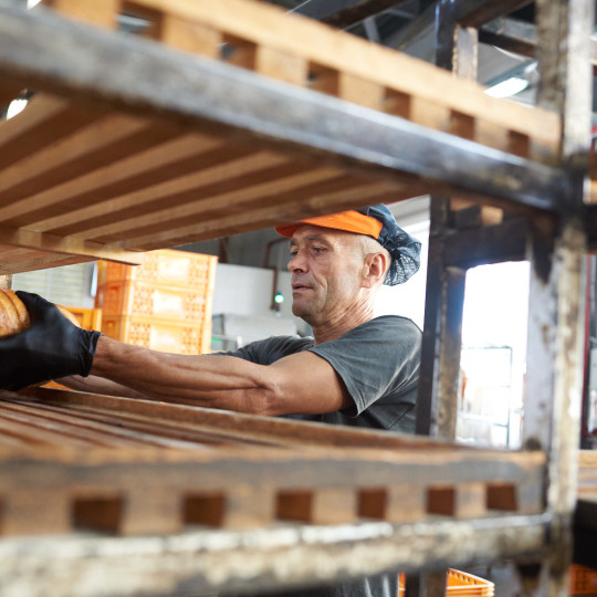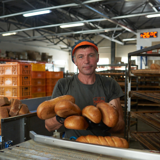 Для хліба алгоритм дещо інший. Із виробництва до логістичного центру ми забираємо хліб ще тепленьким. Далі він потрапляє у пакувальний цех і там лишається до повного охолодження. Гарячий хліб нарізати не можна, адже він досить крихкий. Пакувати теплі буханці теж заборонено, аби таким чином не призвести до швидкого псування продукту. Отож уже в логістичному центрі хліб повністю охолоджується, нарізається та упаковується.