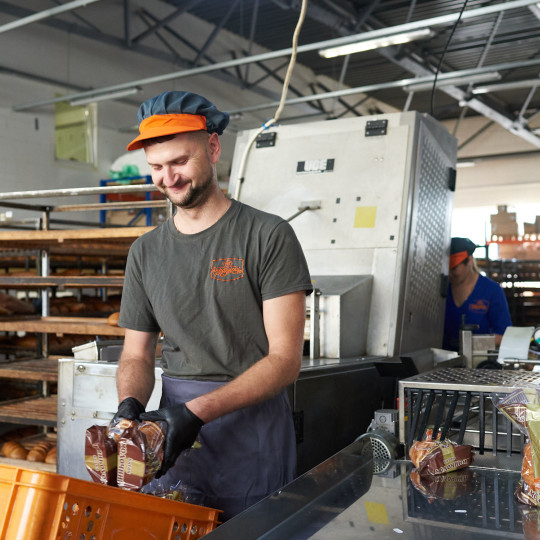 На етапі охолодження та пакування наші хліб та здоба проходять відмінні процеси. Пончики, донати, круасани, кекси, рулетики, грисині, завиванці та завиванчики не потребують нарізання і швидше охолоджуються, тож пакуються відразу на виробництві. До логістичного центру здоба потрапляє вже упакованою.