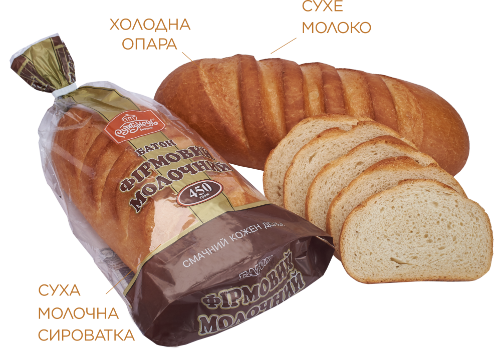 Наша bestseller! Завдяки холодній опарі цей батон має пухкий дрібнопористий м’якуш, насичений аромат і тонесеньку золоту скоринку. Ідеальне поєднання пшеничного борошна вищого сорту і сухого молока роблять його смак надзвичайно ніжним.