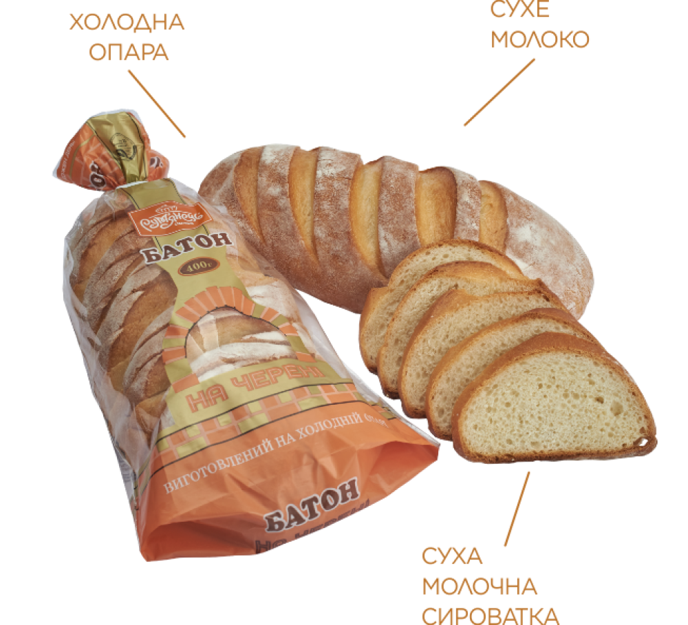 Склад: борошно пшеничне вищого сорту, вода, цукор, сіль, дріжджі, молоко сухе знежирене, сироватка молочна суха, маргарин.