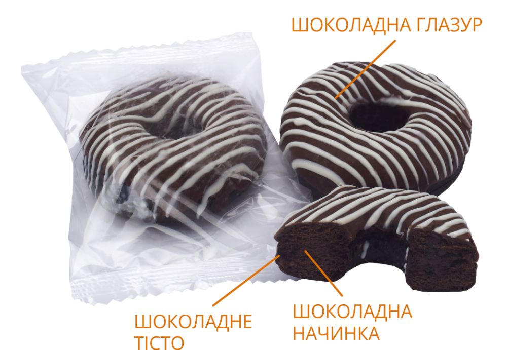 Донат з какао з начинкою «Чоколіна»ШВИДКОЗАМОРОЖЕНИЙ