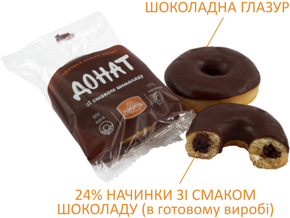 М’якесенький донат з шоколадним шоколадом! Наші донати мають не лише апетитну шоколадну помадку, а й щедро наповнені шоколадною начинкою. Ідеальна версія популярного американського десерту, для справжніх поціновувачів трендових ласощів. Завдяки індивідуальному пакуванню, наші донати – чудовий варіант перекусу to go.