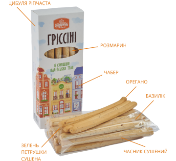 Рекомендуємо спробувати «Гріссіні з томатами» у поєднанні з вершковими крем-супами.