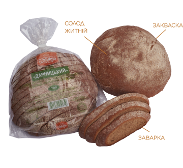 Склад: борошно пшеничне другого сорту, борошно житнє обдирне, вода, дріжджі, сіль, олія соняшникова, екстракт ячмінний солодовий (світлий).