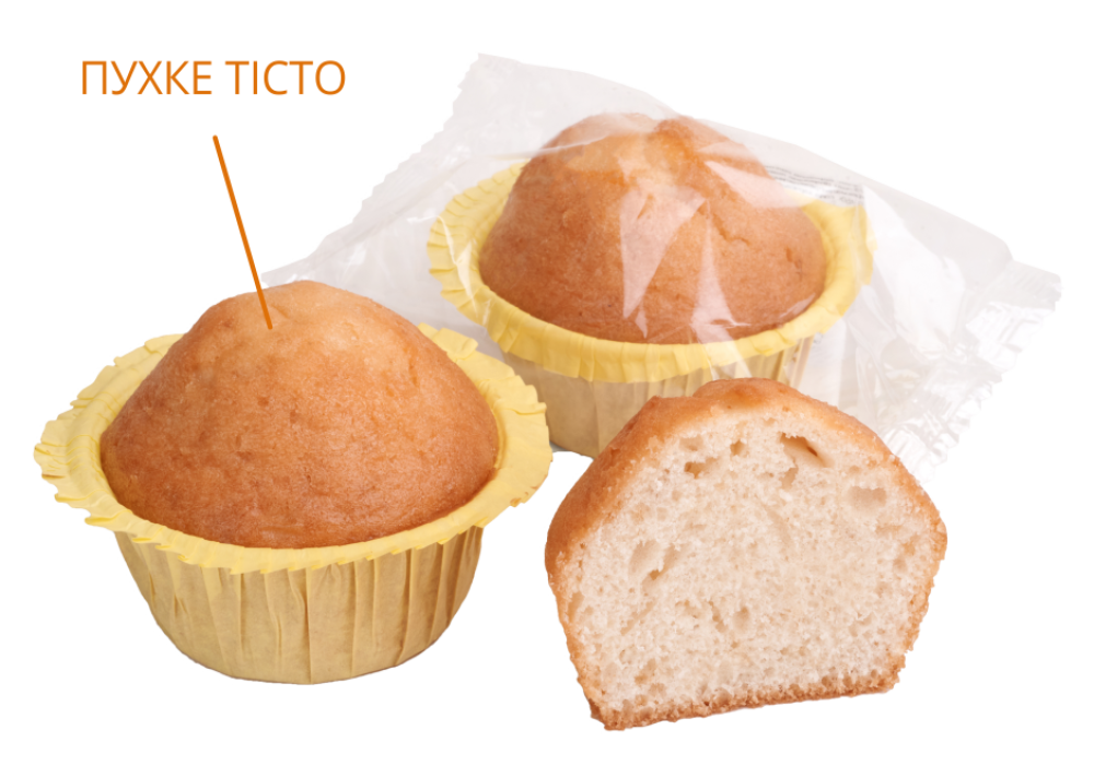 Склад: борошно пшеничне вищого сорту, цукор, яйця курячі, вода, суміш «Маффінмікс 25 Лайт», олія соняшникова, сіль.